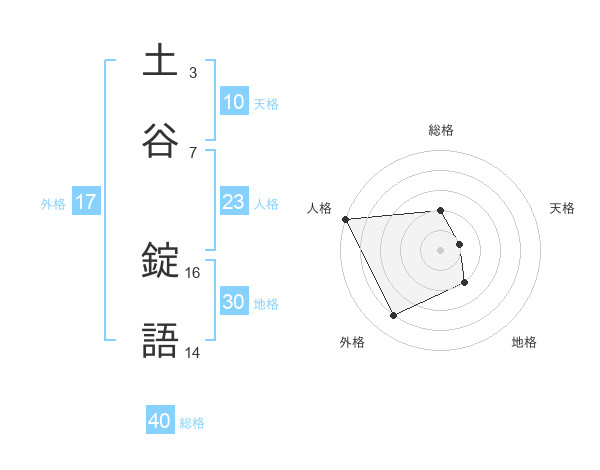 土谷 錠語さんを姓名の画数から五運を鑑定