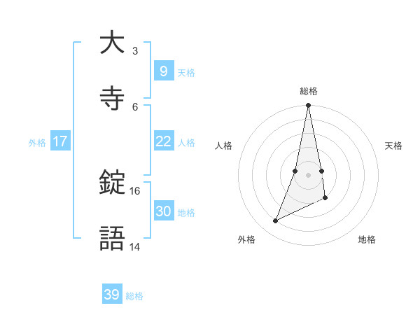大寺 錠語さんを姓名の画数から五運を鑑定