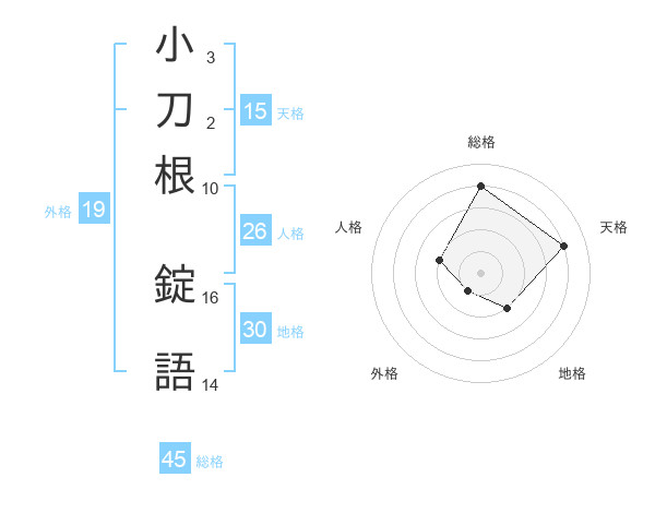 小刀根 錠語さんを姓名の画数から五運を鑑定