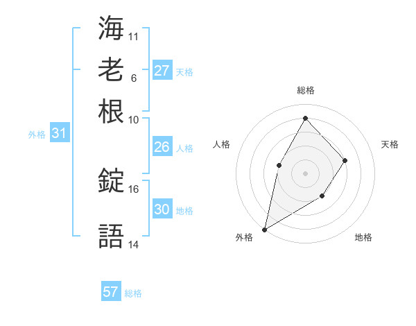 海老根 錠語さんを姓名の画数から五運を鑑定