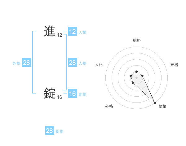 進 錠さんの総格は28画の1点!