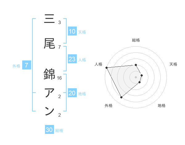 三尾 錦アンさんの総格は30画の2点!