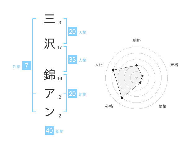 三沢 錦アンさんを姓名の画数から五運を鑑定