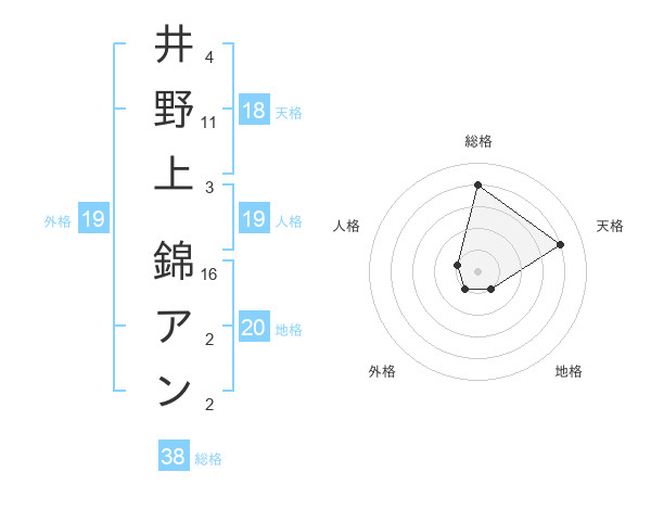 井野上 錦アンさんを姓名の画数から五運を鑑定