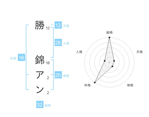 勝 錦アンさんの天格は12画の1点!