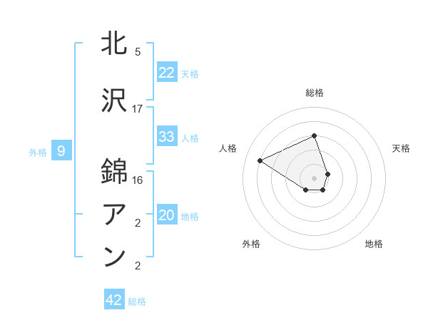 北沢 錦アンさんを姓名の画数から五運を鑑定