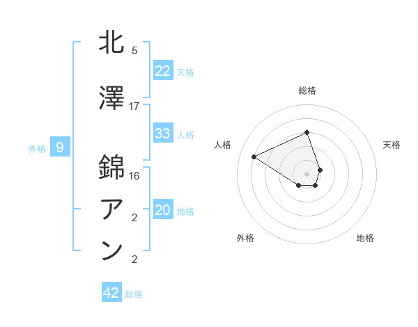 北澤 錦アンさんの天格は22画の1点!