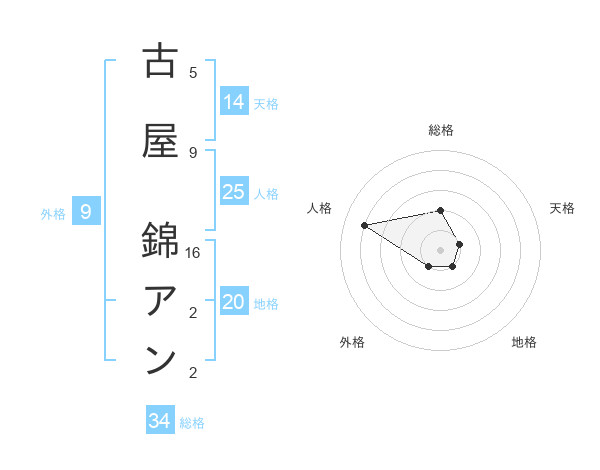 古屋 錦アンさんを姓名の画数から五運を鑑定