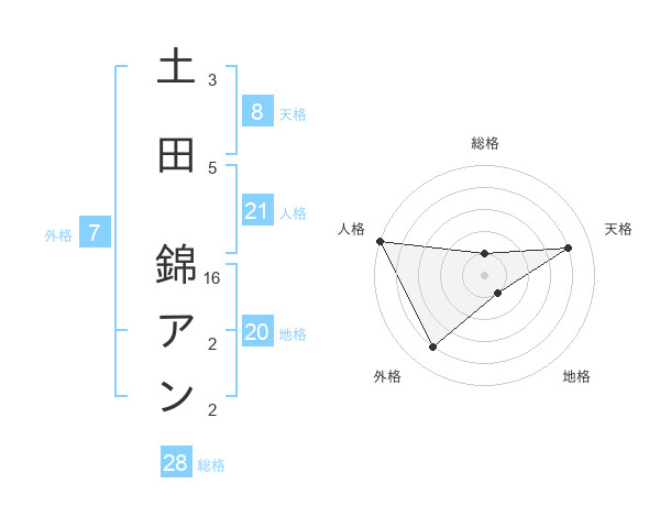 土田 錦アンさんを姓名の画数から五運を鑑定