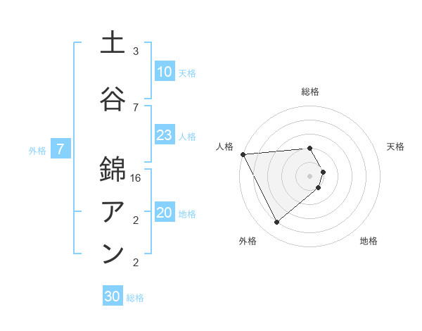 土谷 錦アンさんを姓名の画数から五運を鑑定