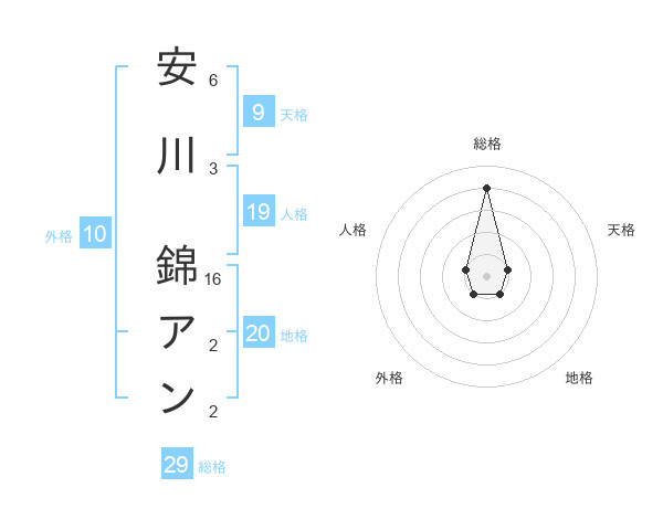 安川 錦アンさんを姓名の画数から五運を鑑定