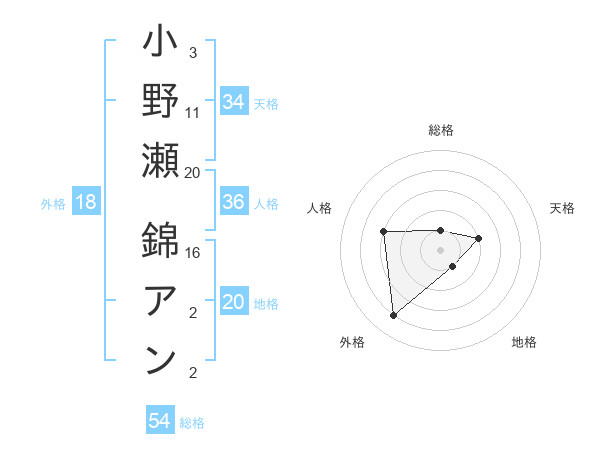 小野瀬 錦アンさんを姓名の画数から五運を鑑定
