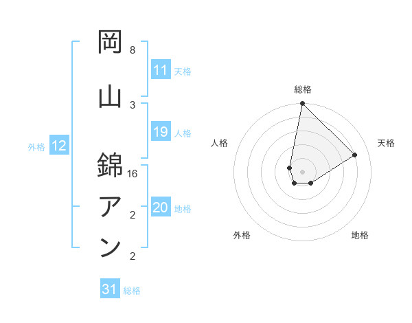 岡山 錦アンさんを姓名の画数から五運を鑑定