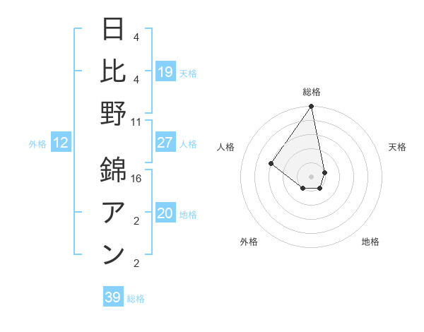 日比野 錦アンさんの総格は39画の5点!