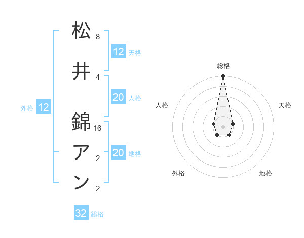 松井 錦アンさんの総格は32画の5点!