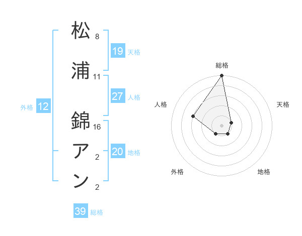 松浦 錦アンさんを姓名の画数から五運を鑑定