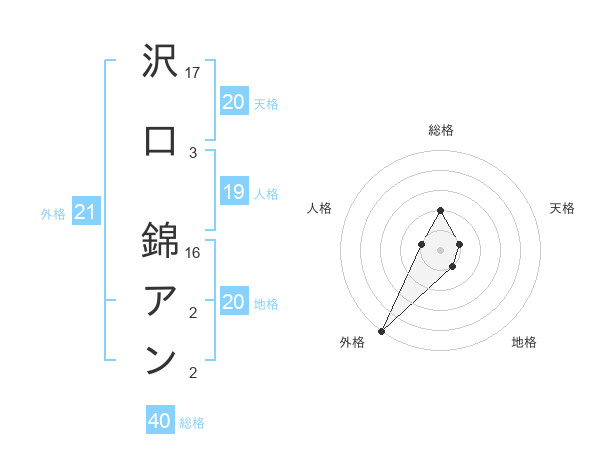 沢口 錦アンさんを姓名の画数から五運を鑑定