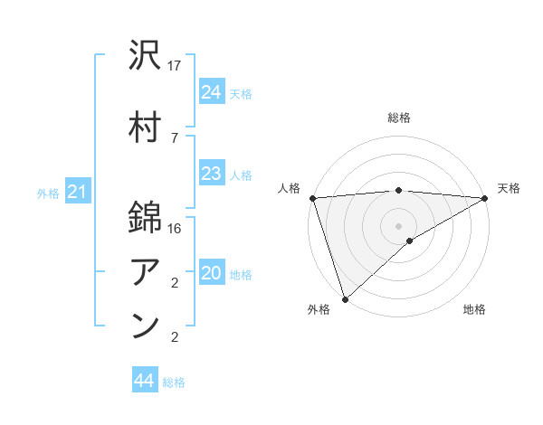 沢村 錦アンさんを姓名の画数から五運を鑑定