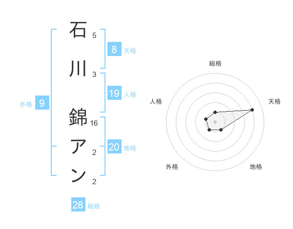石川 錦アンさんの総格は28画の1点