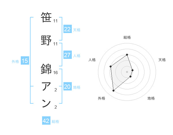 笹野 錦アンさんの天格は22画の1点!
