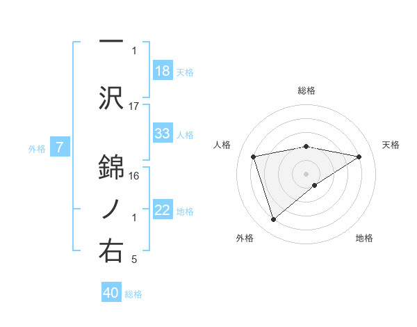 一沢 錦ノ右さんを姓名の画数から五運を鑑定