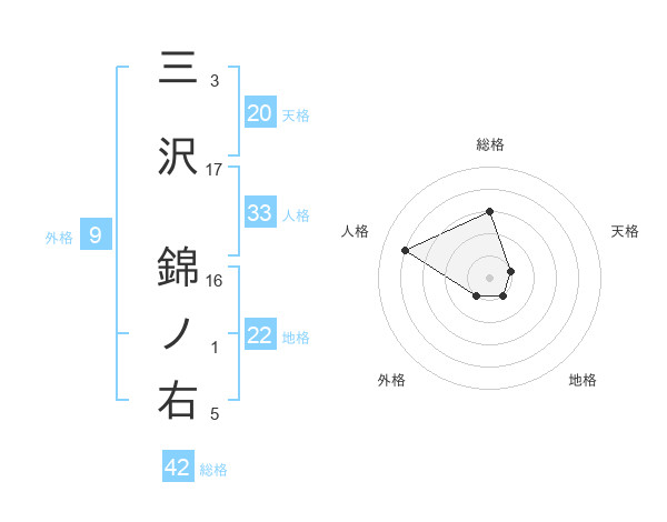 三沢 錦ノ右さんを姓名の画数から五運を鑑定