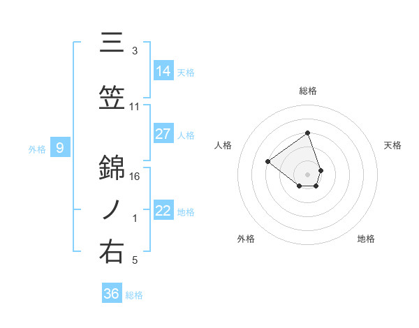 三笠 錦ノ右さんを姓名の画数から五運を鑑定