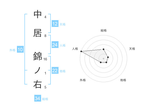 中居 錦ノ右さんを姓名の画数から五運を鑑定