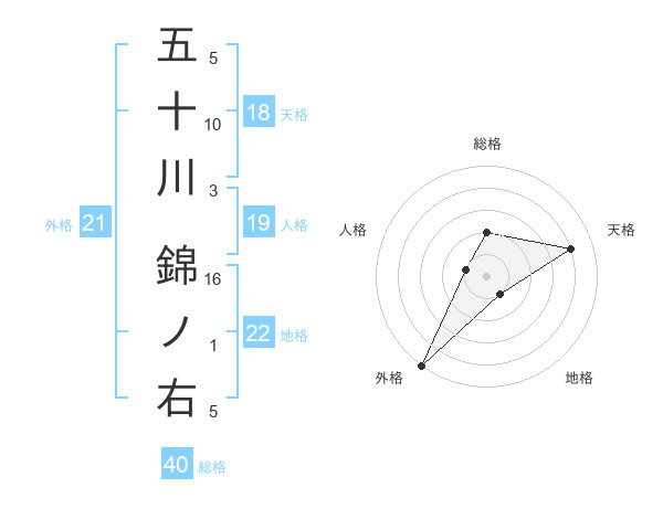 五十川 錦ノ右さんを姓名の画数から五運を鑑定