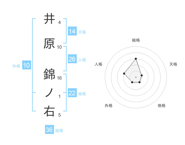 井原 錦ノ右さんを姓名の画数から五運を鑑定