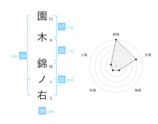 園木 錦ノ右さんの総格は39画の5点!