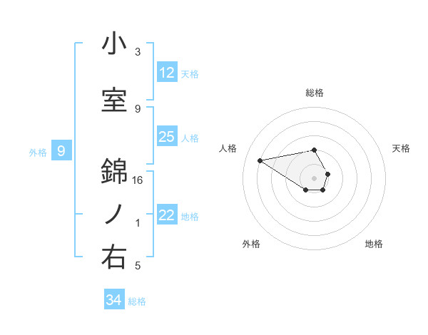 小室 錦ノ右さんを姓名の画数から五運を鑑定