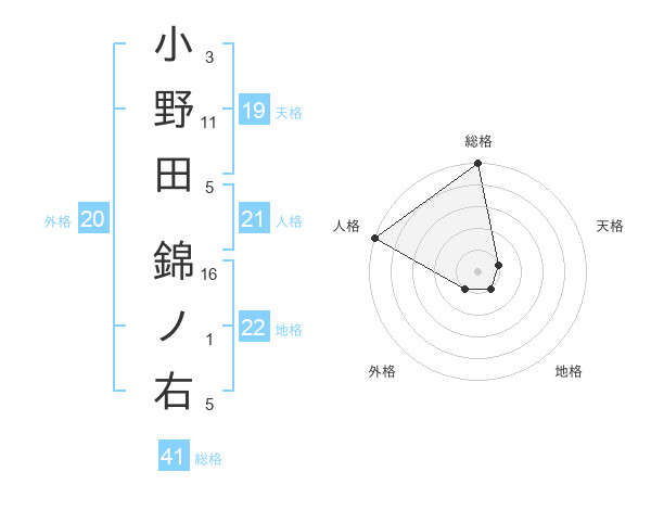 小野田 錦ノ右さんを姓名の画数から五運を鑑定