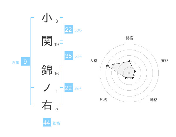 小関 錦ノ右さんを姓名の画数から五運を鑑定