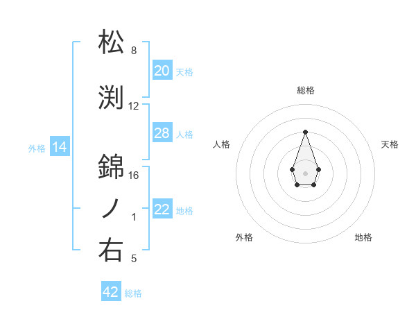 松渕 錦ノ右さんの総格は42画の3点!