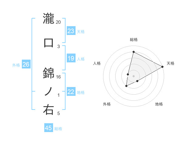 瀧口 錦ノ右さんの総格は45画の4点!