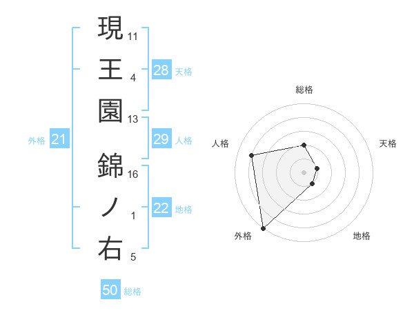 現王園 錦ノ右さんを姓名の画数から五運を鑑定