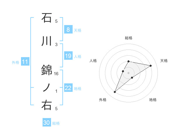 石川 錦ノ右さんを姓名の画数から五運を鑑定
