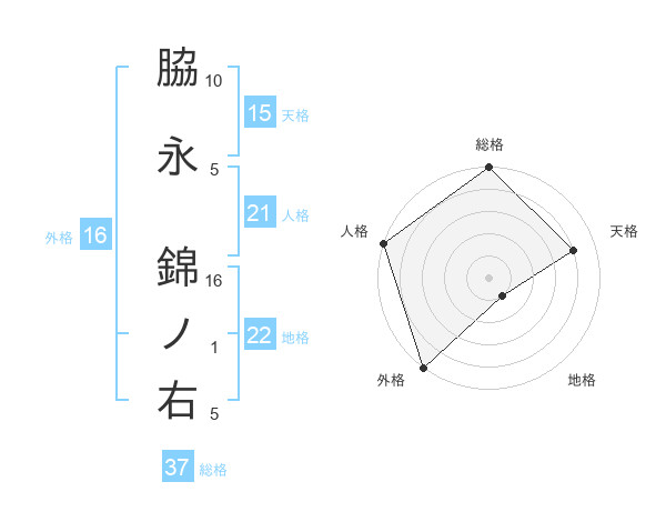 脇永 錦ノ右さんを姓名の画数から五運を鑑定