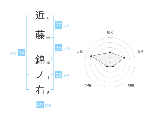 近藤 錦ノ右さんを姓名の画数から五運を鑑定