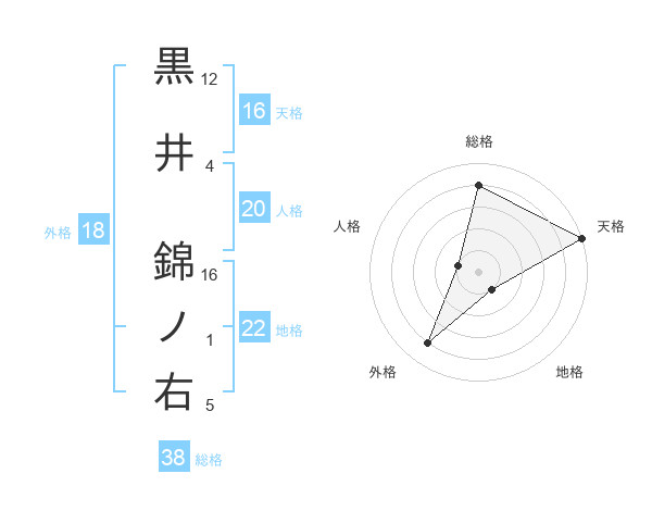 黒井 錦ノ右さんを姓名の画数から五運を鑑定