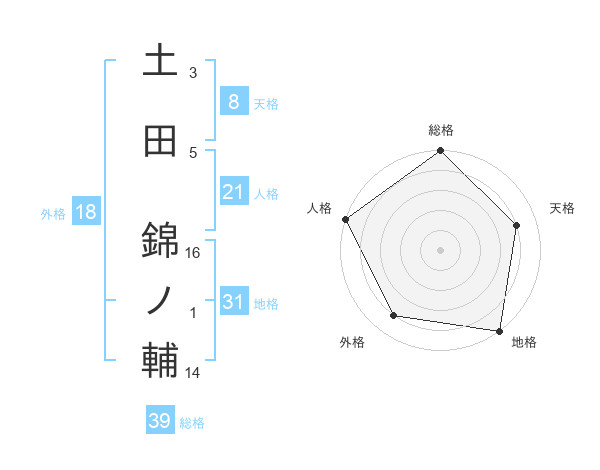 土田 錦ノ輔さんを姓名の画数から五運を鑑定