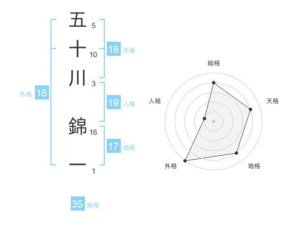 五十川 錦一さんを姓名の画数から五運を鑑定