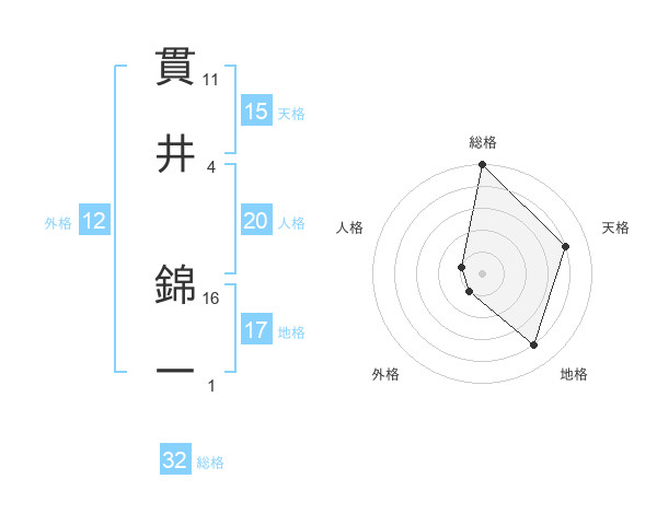 貫井 錦一さんの総格は32画の5点!