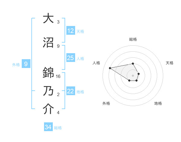 大沼 錦乃介さんを姓名の画数から五運を鑑定