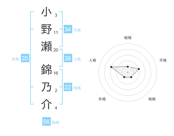 小野瀬 錦乃介さんを姓名の画数から五運を鑑定