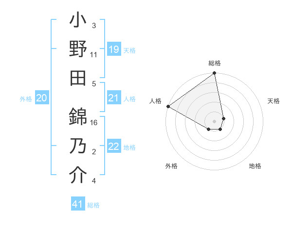 小野田 錦乃介さんを姓名の画数から五運を鑑定