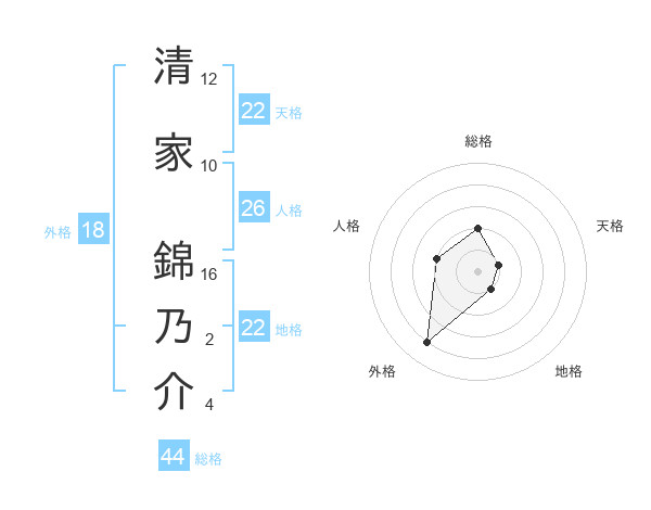 清家 錦乃介さんを姓名の画数から五運を鑑定
