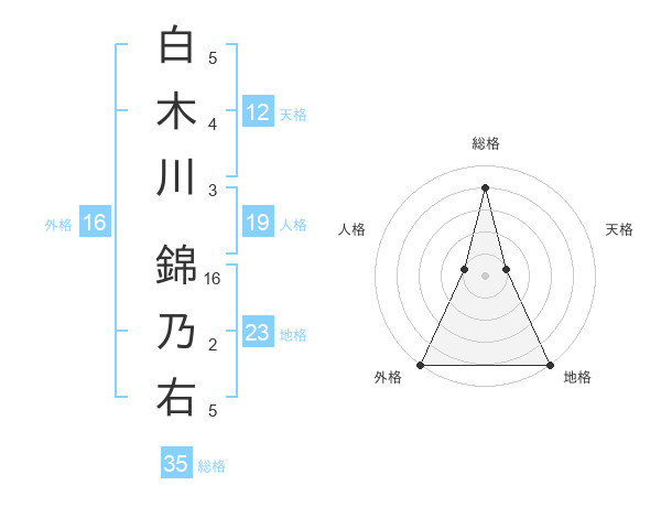 白木川 錦乃右さんを姓名の画数から五運を鑑定