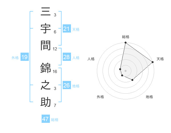 三宇間 錦之助さんを姓名の画数から五運を鑑定